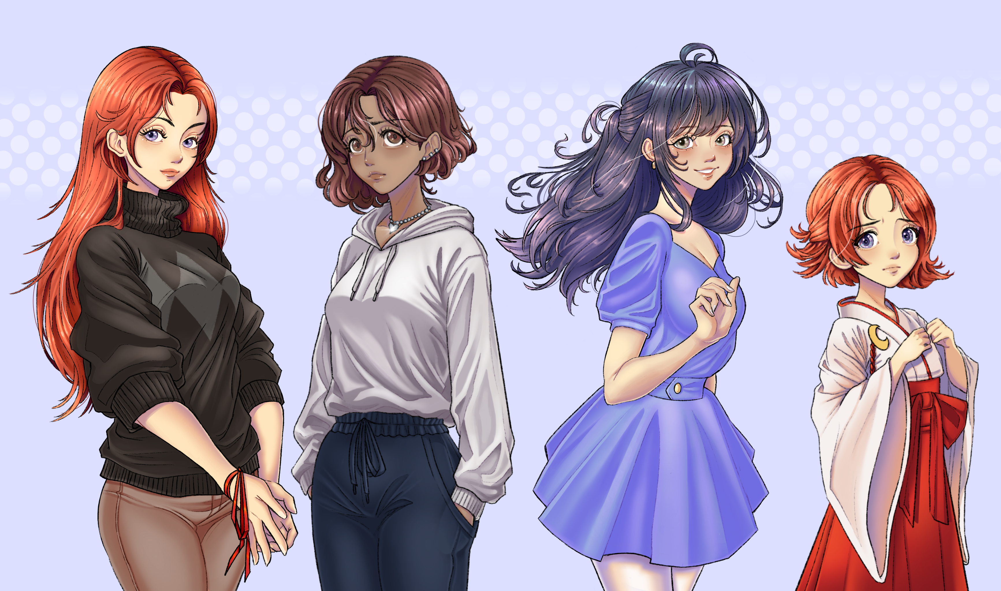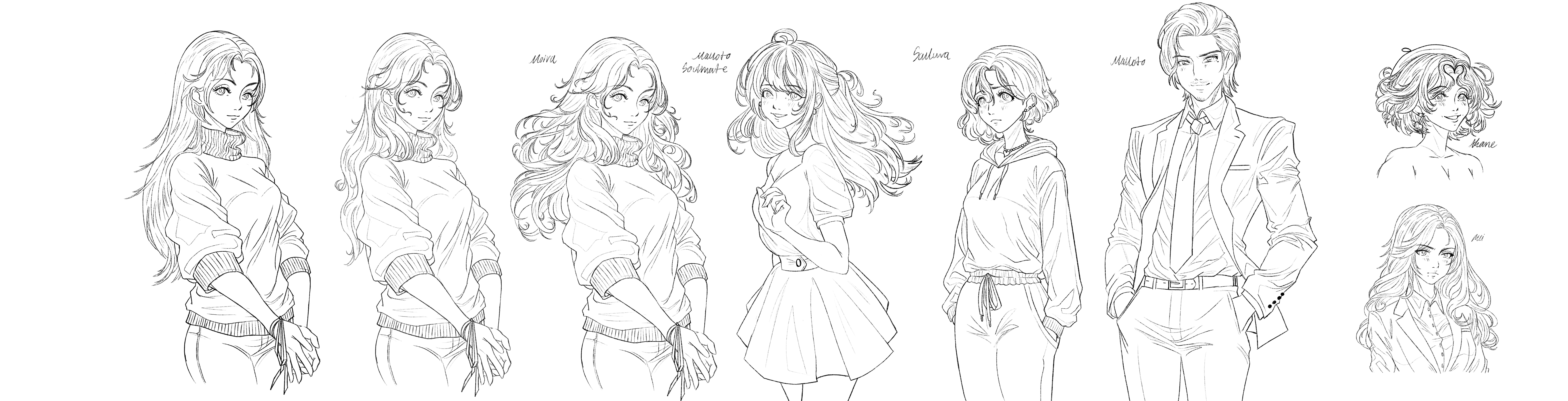 - Illustrate character sprites with appropriate amount of costume & expression variations